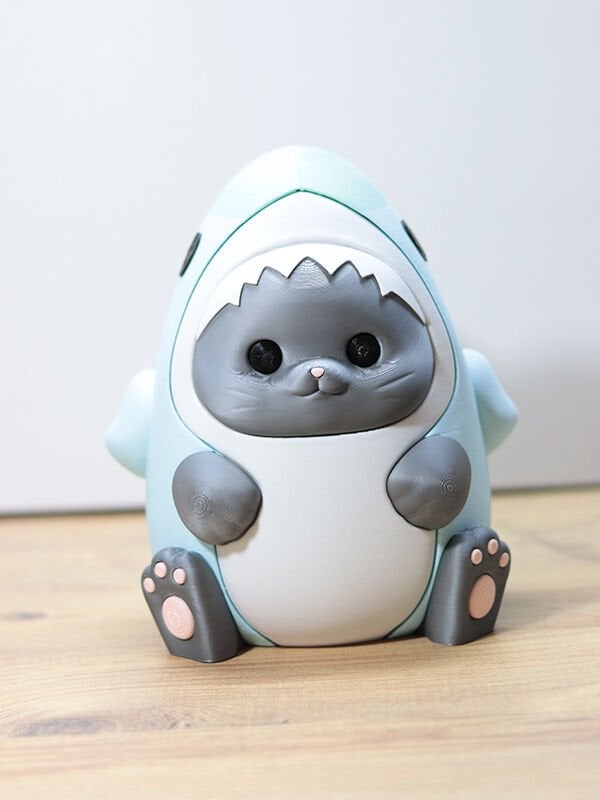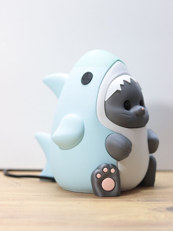 Kedi ve köpek balığının eğlenceli birleşimi olan bu özel tasarım gece lambası, 3D yazıcı teknolojisi ile yüksek kalitede PLA malzeme kullanılarak üretilmiştir. Doğa dostu yapısı ve dayanıklı malzemesi sayesinde uzun ömürlü bir kullanım sunar.