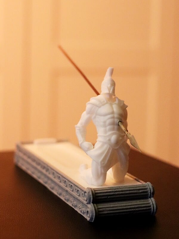 Dekoratif ve işlevsel bir ürün olan Spartalı Tütsülük, modern 3D yazıcı teknolojisi ile yüksek detayda üretilmiştir. Dayanıklı ve çevre dostu PLA malzemeden üretilen bu özel tasarım, hem tütsü yakma hem de tütsü saklama haznesi ile pratik kullanım sağlar.
